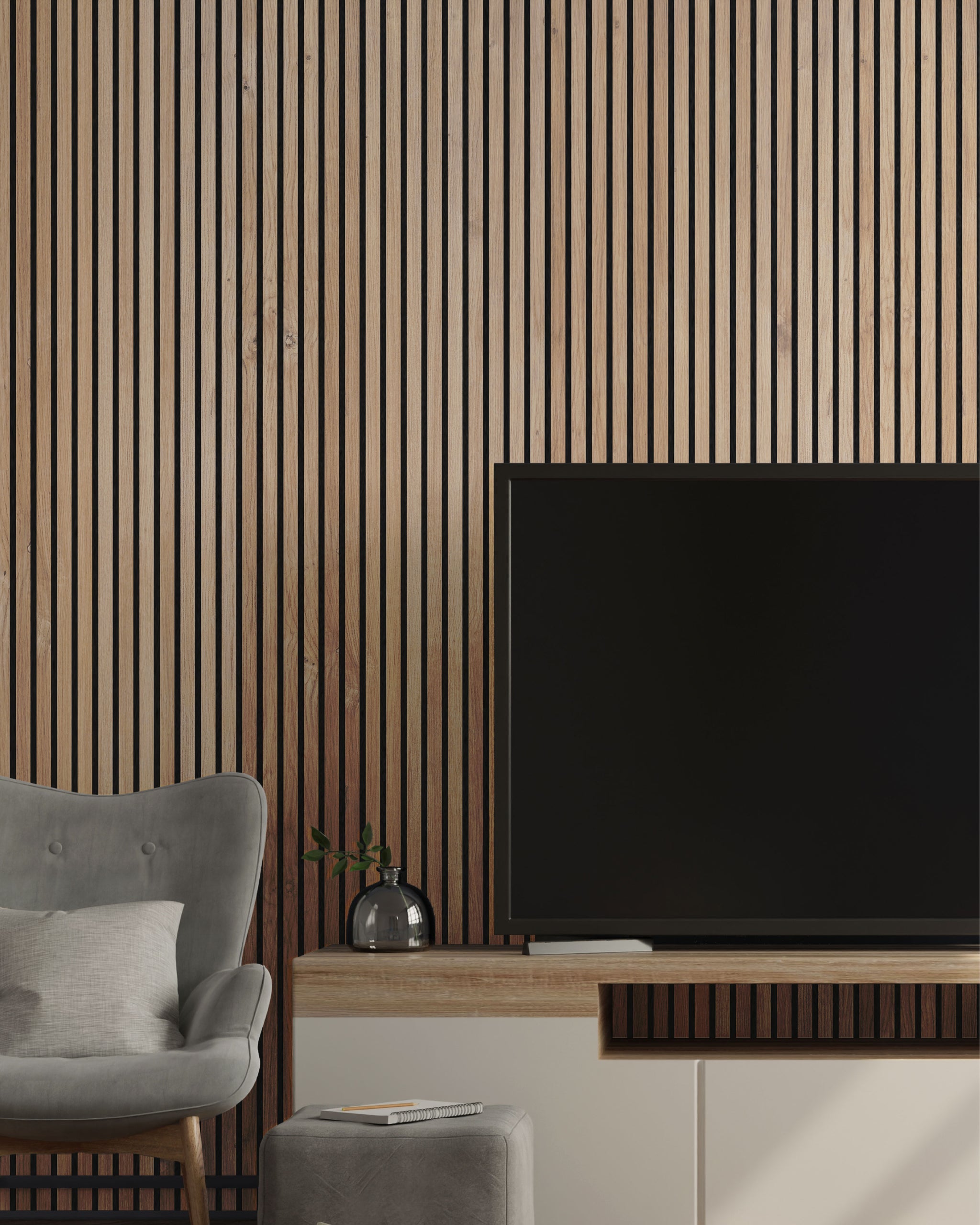 Entdecken Sie unsere innovativen Akustikpaneele aus Holz. Diese eleganten Holzplatten für Wände und Decken verwandeln jeden Raum schnell und stilvoll.