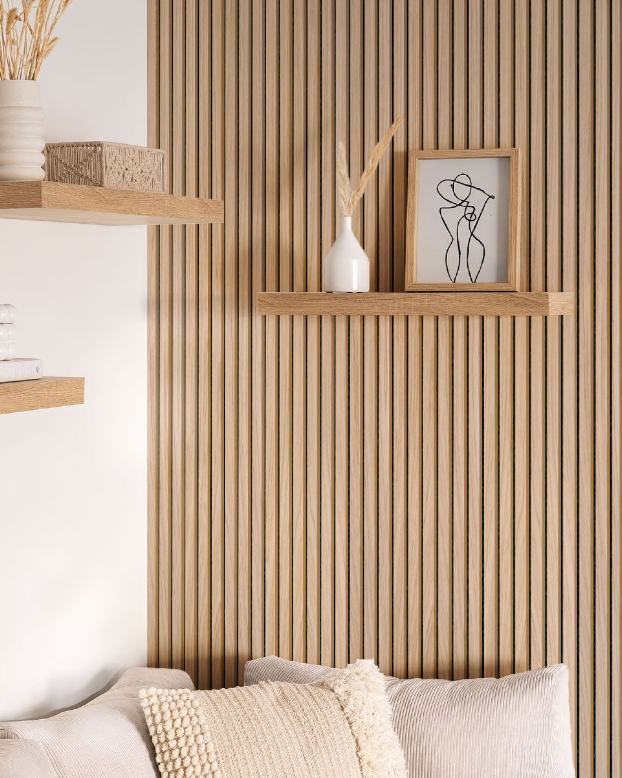 Die Natureichepaneelen, die ich für mein Zuhause gekauft habe, haben die Einrichtung des Raums unglaublich verändert und eine völlig neue Umgebung geschaffen.
