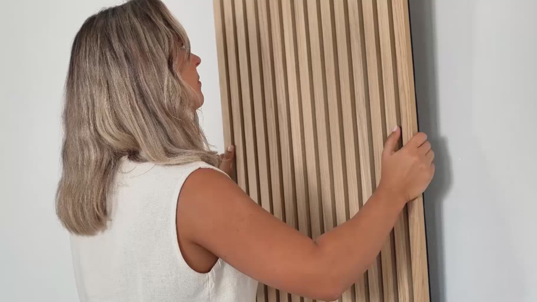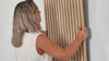 Die Walleu-Akustikpaneele besteht aus 15 Lamellen, die in gleichmäßigen Abständen von 13mm verteilt sind und alle auf einem 9mm dicken Akustikfilz angebracht sind.